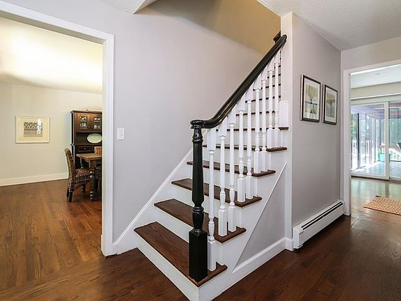 Beautifully manicured level lot in Mimosa Estates w/classy stonework, loads of yard, mahogany front porch that pops! The poster child for quality upgrades includes an open floor plan w/brand new classic white kitchen w/granite, hardwood floors, and stainless steel appliances. Huge formal living room with fireplace & coffered ceiling, large family room w/new half bath & laundry room. Refinished hardwood floors on both levels, five (5) bedrooms including large, light-filled master suite with private bath and generous closet space. New hall bath. Massive sunroom w/tile flr, ceiling fan, large deck. Ideal opportunity for indoor/outdoor entertaining. Rec area with pool, tennis ballfield. Loads of social opportunities. Qrtly tax dist fee $179.