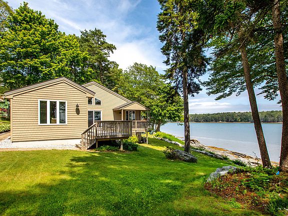 Fabulous year round waterfront home. Completely rebuilt since 2016. Open floor plan with vaulted ceiling and walls of glass to let the outside in. Well planned kitchen with cherry cabinets, granite and maple flooring. Spacious living room with fireplace, hard wood and dramatic 180 degree water views. Ample dining area with hard wood and access to a lovely private wrap around deck. Set right at the water's edge with mature lawn that allows easy gradual access to gentle rocks for swimming, kayaking and small boating in the warm tidal waters of Middle Bay. Long unobstructed views, abundant migratory bird and wildlife - all just minutes from Bowdoin College and all that down town Brunswick has to offer. An easy boat ride to Paul's Marina where you'll find sandwiches, lobster & fuel for your boat, & close to the all tides public boat launch. Minott Shore is a small waterfront enclave consisting of classic seasonal cottages and significant year round homes. To be sold mostly furnished - turn key. A wonderful location and a very rare jewel.