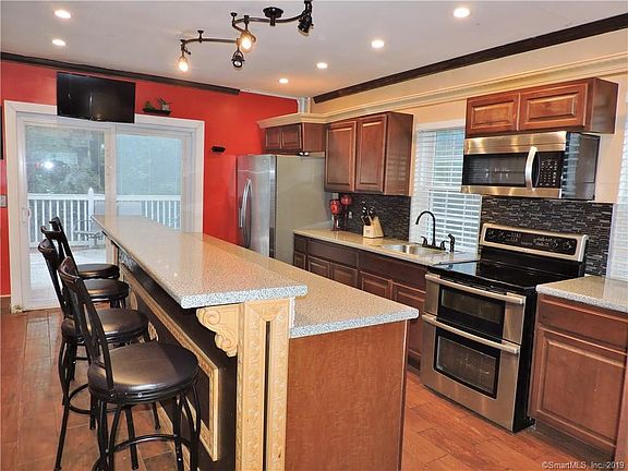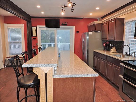 Lady Victorian graced with a towering minaret and inviting wrap-around front porch offers charm of the yesteryear but the updated kitchen and baths give you modern comforts. The open floor plan is great for gatherings. Just outside the kitchen slider door is a 20 x 11 upper deck for summer fun and entertaining. On the second floor you'll find 3 large bedrooms, a full bath with jetted tub and an office area. The third level has 3 rooms, currently unheated, for additional square footage. A little love goes a long way, sold as is. Come make this lovely lady your own. Exterior trim will be painted when weather permits.