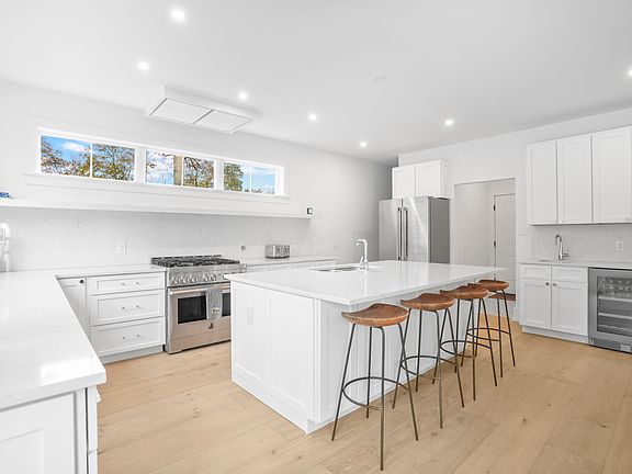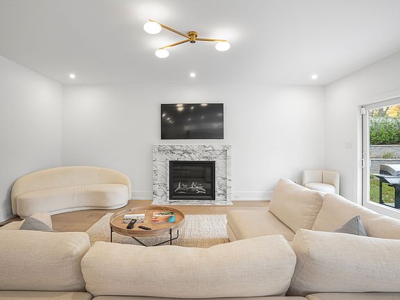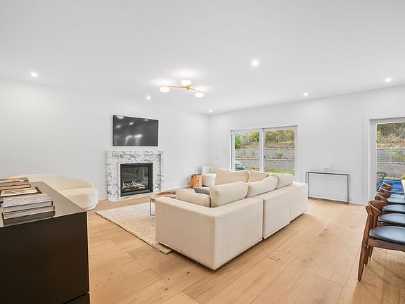 Introducing 79 North Bishop Lane - a stunning contemporary 5-bedroom, 6.5-bathroom home offering over 4,165 square feet of finished living space across three levels. Set on +/- .44 acres just minutes to Southampton Village, the property features an 18' x 36' heated gunite pool with sundeck, bluestone patio, marbled gas fireplace, outdoor shower, and beautifully landscaped grounds. Inside, the home is thoughtfully designed with crisp white oak plank flooring and an airy, open-concept layout. The chef's kitchen is a showpiece with custom cabinetry, a grand center island, JennAir appliances, wine fridge, beverage cooler, pantry, and open shelving. The great room centers around a Carrera marble gas fireplace and oversized sliding doors that flow seamlessly to the backyard. A first-floor en-suite bedroom completes this level, ideal for guests, an office, or den.Upstairs, four en-suite bedrooms include a generous primary suite overlooking the pool with a custom walk-in closet and spa-like bath with dual quartz vanity. A linen closet and full laundry room add convenience. The finished lower level expands the home with a media room, gym area, and recreation space, plus walk-out egress access. Additional highlights include a two-car garage with shiplap-detailed mudroom, central heating/cooling, and powder room. Whether for year-round living or seasonal escape, 79 North Bishop Lane offers turnkey Hamptons luxury in a prime Southampton location close to shops, dining, nightlife, and world-class beaches. Available Fully Furnished.