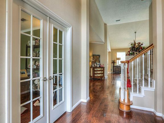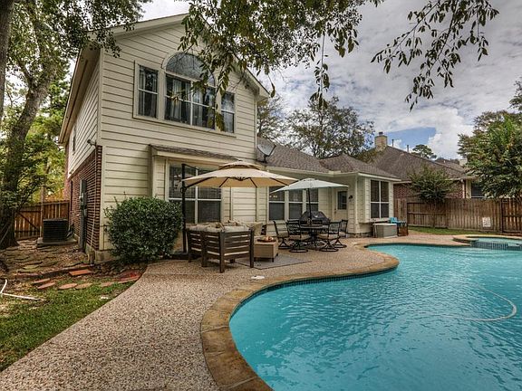 Beautiful wood flooring runs thru most of first floor of this move in ready home in Alden Bridge* Refreshing pool/spa with waterfall offers year round fun* Master & study on first floor* Large gameroom w/ snack bar & 3 addn'l bedrooms on 2nd floor* Kitchen includes 5 burner gas cook top, granite, SS appliances & island* Carpet installed in '16, Roof in '08, new upstairs AC in '15 & upstairs bathroom countertop & sink replaced in '16* Near Buckalew Elem & Village Shopping* No flooding in Harvey
