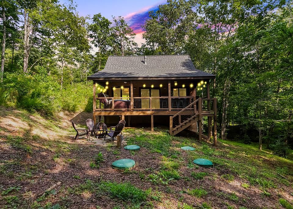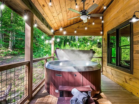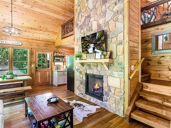Escape to the heart of Blue Ridge in this charming 2-bedroom, 1-bathroom cabin nestled in the desirable Mountain Tops neighborhood—just minutes from downtown yet surrounded by nature for that perfect blend of convenience and seclusion. Excellent rental history ---grossed $66K last year. This well-maintained cabin offers incredible privacy, ideal for peaceful mornings on the porch and relaxing evenings under the stars. Inside, you'll find a warm and inviting living area with vaulted ceilings, rustic wood finishes, and a gas log fireplace—perfect for curling up on cool mountain nights. The open-concept kitchen and dining area are ideal for cozy meals or entertaining guests. Step outside to your private hot tub and soak your cares away while taking in the fresh mountain air. Additional features include: Fully furnished interior with charming cabin dcor-- Spacious covered porch for year-round enjoyment --Level, easy-access lot with ample parking. Whether you're looking for a full-time residence, a mountain escape, or a rental investment, this cabin is a rare find in one of Blue Ridge's most established neighborhoods. SOLD FURNISHED! Don't miss your chance to own a slice of mountain paradise!
