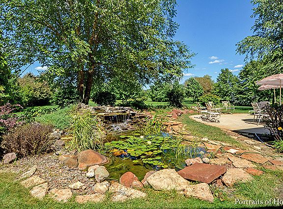 Imagine yourself in this QUALITY custom home on a 1.6 acre lot in the Blackberry Oaks Golf Course Community. Home is light, bright and expansive with two sets of staircases. The updated kitchen is complete with granite, new stainless appliances and light fixtures flowing into the family room creating open concept living! Breathtaking views from the Family Room with 12 windows to bring the outdoors in! The formal living room has one entire wall of gorgeous windows looking out to the waterfall flowing into the pond! Another wall of windows in the Eating Area takes in more natural light. Every bedroom has a full bath and four of them have walk in closets! First floor master bedroom with sitting area lets you escape to your own private retreat. Basement would work well for separate living with it's own kitchenette, full bath, bedroom, living and play area. Pool table, ping pong table, Foosball and air hockey all negotiable. Make your move today!!