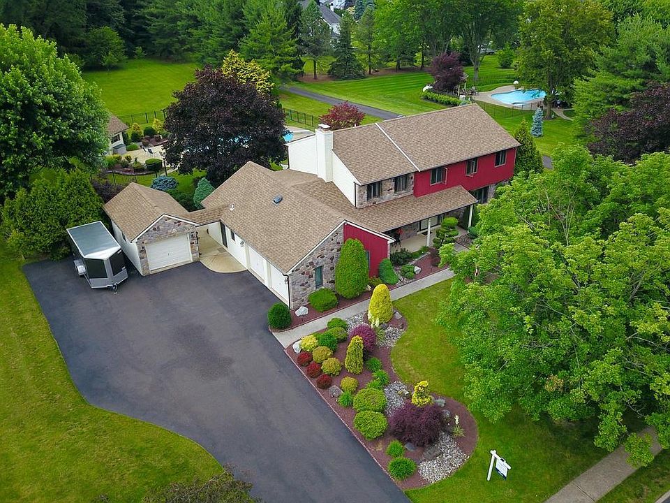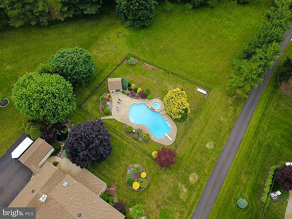 This home has something for everyone, whether you like to host pool parties with your friends and family, relax in the heated spa, or sip coffee on the covered rear porch overlooking your private oasis of just under 1.5 beautifully landscaped acres in Green Valley North ~ in Churchville. The appeal of this home starts as soon as you arrive this home with beautiful mature landscaping to view as you as you walk to the covered front porch. The two-story entry has hardwood floors and an elegant curved staircase. To the right is a large formal living room with crown molding, recessed lighting and a large bow window. The formal dining room leads you to the gourmet kitchen with maple cabinets, center island, counters, stainless steel appliances and a breakfast room with sliding glass doors to the covered rear porch. Off the breakfast room is the huge family room which spans from the front of the house to the rear. It features a beautiful stone fireplace, rear atrium doors and steps down to the bonus room/den, perfect for a home office or playroom. Completing the first floor is a powder room, a large laundry/mud room with laundry sink, access to the garage and the side door which leads to the pool area. The second floor features a large main bedroom suite with a dressing area, walk-in closet and completely remodeled private bath with a whirlpool tub, vanity with Corian counters and a beautiful walk-in shower with custom tile work. Three additional and large bedrooms, as well as the hall bath with double sink vanity and tub, complete the second level. The finished basement offers a wet bar, perimeter seating with built-in storage and a pool table (which is negotiable). This is a great space to add a media room, as the speakers are already in place! Continue to the rear yard, where the entertaining continues on the covered rear porch which overlooks the koi pond and fenced pool area, complete with a Gunite concrete inground pool, heated spa and pool house. The yard