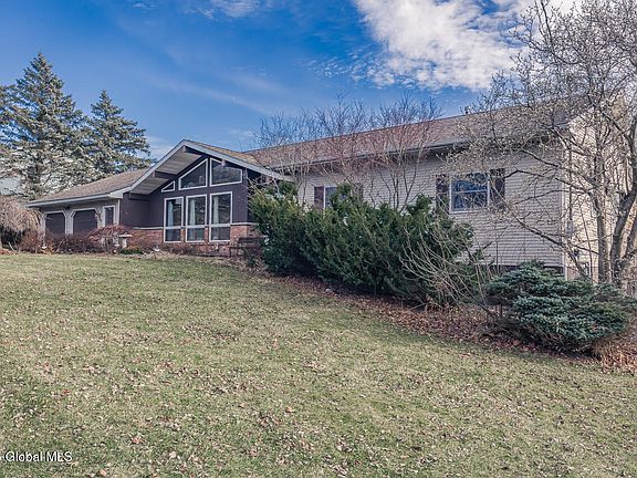 Hagaman - Spacious 3BR/2BA/2car home on a 1/2 acre lot. Kitchen great room combination with gas fireplace and sliders to private back yard. Large living room features vaulted knotty pine ceiling, hardwood floors, large windows provide natural light. Kitchen is open to the family room/great room w/dining area. Solid surface counters & SS appliances. Formal dining room. Primary bedroom with ensuite. HUGE basement offers future living space opportunities. Landscaped yard. Deck. IG pool requires complete rehab. Solar system is leased thru tesla. avg cost is 40-60 per month.