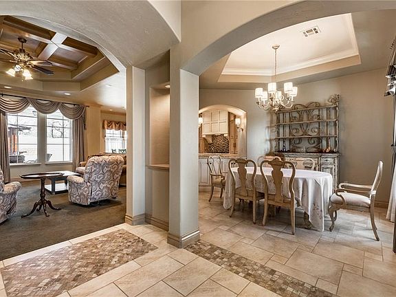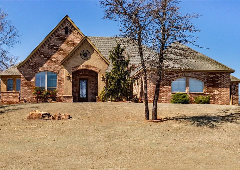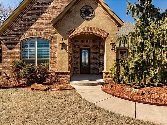 Gorgeous custom 3 bed plus office and bonus room. Trey ceilings in living room with beautiful gas fireplace. Amazing kitchen, stainless steel appliances, 5 burner cook-top, custom cabinets and 2 pantry's. Formal dining with built in bar top from kitchen makes for easy entertaining. Master suite with barrel ceiling and beams, dual vanities, walk in shower and large soaking tub, and great walk in closet. Plenty of built-in storage throughout the home. Entertainers paradise in backyard with covered patio and hot tub with gazebo and relaxing fire pit. Oversize 3 car garage. 13-15 person storm shelter and a large fenced backyard. Kitchen appliances will stay with the home along with t.v mount in living room and book cases in office. A must see to appreciate.