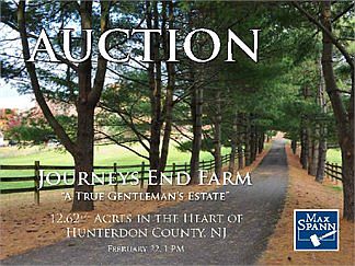 AUCTIONJourneys End Farm12.62+/- Acre Gentleman's EstateRaritan Twp, Hunterdon Co, NJFebruary 22, 2014 1PM- Classic Colonial Estate c. 1793- 5 Bedrooms, 3 1/2 Bath, 4 Fireplaces - Gourmet Kitchen with Custom Cabinetry & Granite Countertops- Living Room with Custom Mural of the Grounds- Separate Guest House with Bedroom Loft, Private Bathroom, Full Kitchen & Living Room- 5 Stall Barn with Tack Room and Hay Loft, Plus 2 Paddocks- Approximately half a mile to the Stanton Station Trail System for Hiking and Riding- 2 Additional Barns Feature a Workshop, 2 Car Garage, 3 Bays for Farm Equipment and Oversized Storage Lofts- Located in a Top Rated School System- Close to Flemington Outlet Shopping, Dining in Clinton, and Routes 31 & I-78 Property Previews: Saturday January 25th, Saturday February 1st, Saturday February 8th, & Wednesday February 12th 12-2PMAuction: Saturday February 22nd 1:00PM, Holiday Inn Clinton, 111 W. Main St, Clinton, NJ 08809Call today or visit our website for a Property Information Package!