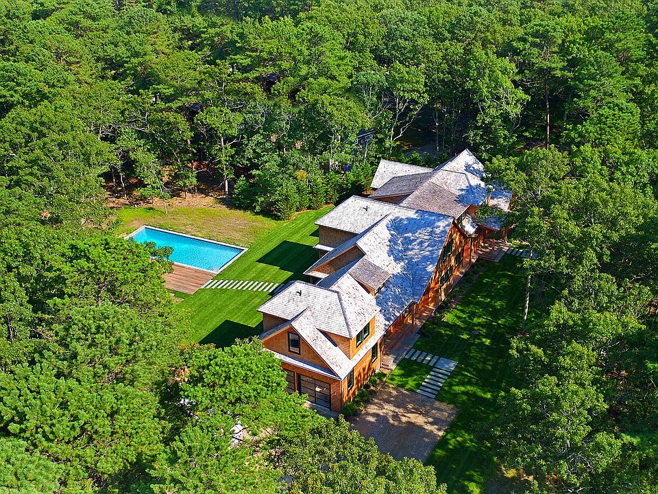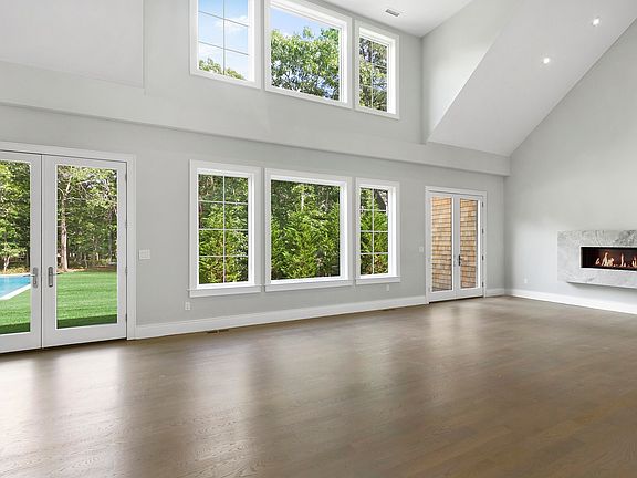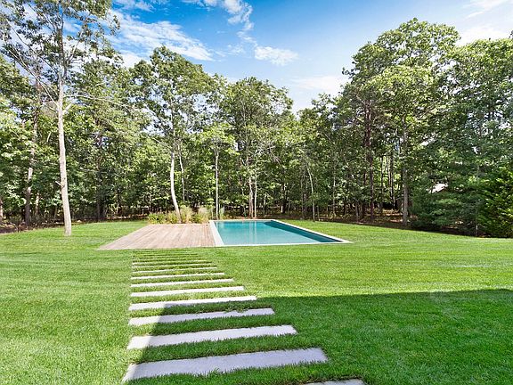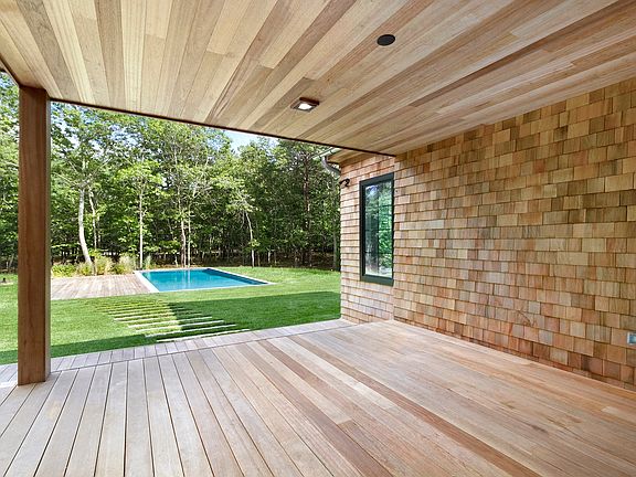 East Hampton Village Fringe new construction on 1.45 acres is this 6,900 sq. feet+/- on three levels with 6 bedrooms, 6.5 bathrooms and an attached 2-car garage. The first floor features an expansive living room with a soaring 19-ft ceiling height with a sleek linear fireplace. The kitchen has a beautful Calcutta quartzite center island and all high-end appliances. There is also a family room with fireplace and barn doors leading out to the formal living room, covered porch, mudroom, and a first floor master bedroom with vaulted ceilings. The second floor has a large laundry room, and an additional 3 bedrooms, all en-suite. The finished basement includes 2 bedrooms with a full bathroom, gym, media room and a bonus room. The backyard is well landscaped for privacy and has a gunite heated pool, and covered porch. Come see this newly built luxurious home close to both village and ocean beach.