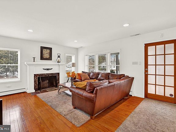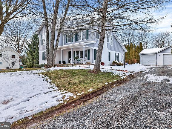 Welcome to this charming and sunlit home nestled in a prime location. 79 Old York Road is just a leisurely stroll to the vibrant New Hope borough, yet it’s tucked away from the hustle and bustle. Built in 1951, completely re-modeled, and expanded from the ground up, the home is a perfect mix of classic and contemporary design. Boasting numerous skylights, high ceilings, tall windows with wide sills, interior glass doors, and recessed lighting, this space will accommodate any decor. The front of the home features a large covered porch, ideal for sipping morning coffee or unwinding in the evening while taking in the picturesque surroundings. Step inside and you’ll enter the living room adorned with walls of windows, a wood-burning fireplace, and hardwood floors. Continue through the French doors into the spacious formal dining room, with the warmth of hardwood floors and large windows complementing the space. A few steps further and you are in the heart of the home, the large eat-in kitchen, featuring a soaring and airy two-story ceiling, custom cabinetry and tile floor. The main level also has a sizeable bedroom, currently being used as an office and a full bathroom. Upstairs you’ll discover a roomy primary bedroom with full bath and a large guest suite with its own full bath. Both rooms have plenty of closet space. The newly remodeled lower level is the perfect place to entertain, relax, or exercise with a custom wet bar as the focal point for gatherings. The open space is large enough to serve as a cozy hangout for movie nights and also a dedicated space for fitness activities. The laundry room and ample storage areas are on the lower level as well. A convenient, detached two-car garage and a quiet yard complete the home. 79 Old York Road has it all! Schedule a showing and experience the convenience of living within walking distance to the heart of New Hope Borough’s diverse restaurants, boutique shops, theater, towpaths, and the scenic beauty along the Delaware River.