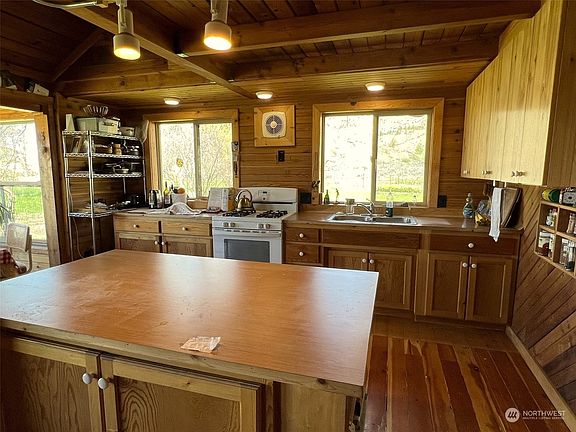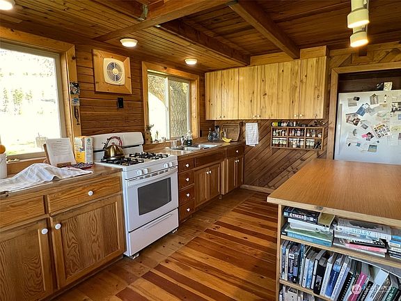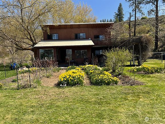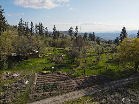 Rustic cabin on 39.9 acres with privacy and views. Fir floors throughout, cute custom finishes, lots of natural light and a very efficient floor plan. Meticulous garden has great combination of fruit trees (apricot, apple, nectarine, prune, various nuts), berries, vegetables, and lots of flowers. Oversized deck off of upstairs bedroom. Bonus room/office and additional storage room upstairs. The two parcels that convey with the sale are part of a conservation agreement which prevents subdividing and protects the natural beauty and the natural wildlife in the area. Creek runs through northwest corner of the property. Last home on a private road. This is one you must see.