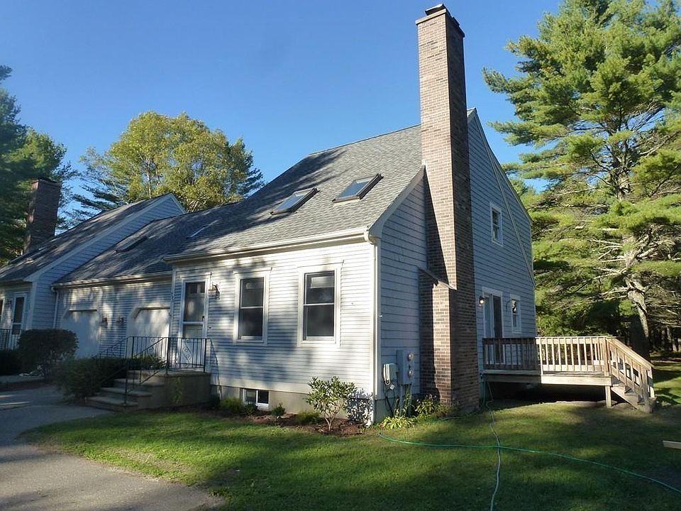 Newly Priced/UNIQUE & Spacious 3 Bedroom(Plus Loft)& 2 FULL Bath "Duplex" Style Townhouse w/Attached 22'x19' Garage(Door Opener)/FIRST FLOOR Master Bedroom(Den)w/Full Bath(Shower)/GREAT SINGLE FAMILY ALTERNATIVE/NOT 55+ Complex/Pet Friendly/Spectacular Living Room w/Vaulted Ceiling, FIREPLACE & TWO Skylights/Kitchen-Dining Area w/Slider to Private Deck(12'x10')/Stained Wood Risers/FOUR Skylights in Total/FIRST Floor Master Possibility/Architectural Roof-2005/NEWLY Carpeted First Floor LR & Upstairs Bedroom/Full Basement-Additional Storage-Exterior Bulkhead Access AND Washer & Dryer Hook Ups-Additional Hook Ups in Upstairs Bedroom/Full Bath on Each Floor(TILED)/Large-Private Back Yard-1.48 Acres/Quiet Country Location...Yet Close to Highways(28, 495 & 195)/VACANT & Available For Quick Closing/Town Water & Title V. Approved/Condo Fee $298.83/month