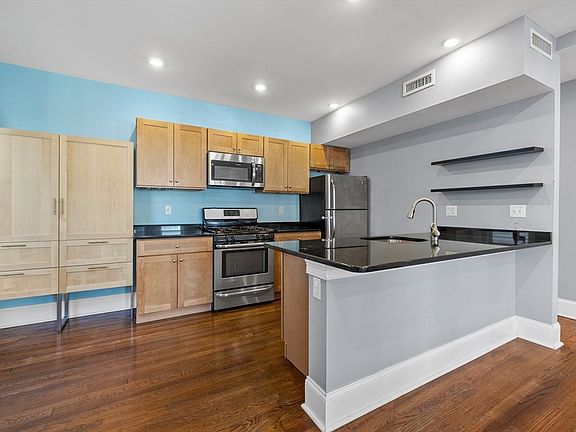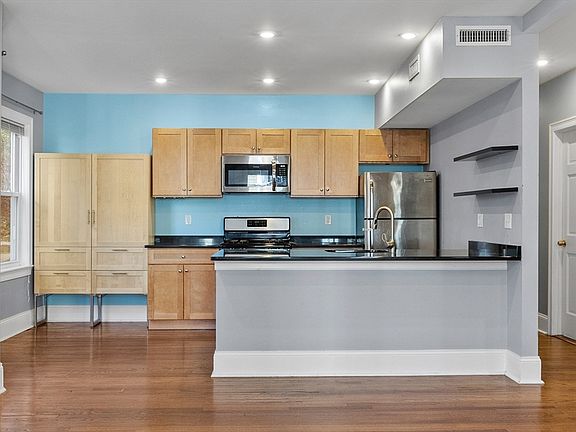 Discover the allure of this charming first-floor condo on Parkton Road in Jamaica Plain! This 3-bedroom, 2-bathroom home features an inviting open-concept kitchen and a bow front living area, both filled with natural light. The kitchen impresses with granite countertops, stainless steel appliances, ample storage, and a generous breakfast bar, perfect for cooking and entertaining. The primary suite accommodates a king-sized bed and includes an en suite bathroom. Additional amenities include in-unit laundry, central air conditioning, a Nest thermostat, and deeded storage in the basement. Enjoy outdoor living with a private deck and exclusive access to a fenced-in yard. Located just a block from Jamaica Pond, Olmsted Park, and the Emerald Necklace, this home offers easy access to nature and leisure activities. You'll also appreciate the convenience of being close to Whole Foods, the Orange Line, and a variety of local shops and restaurants.