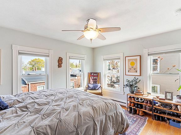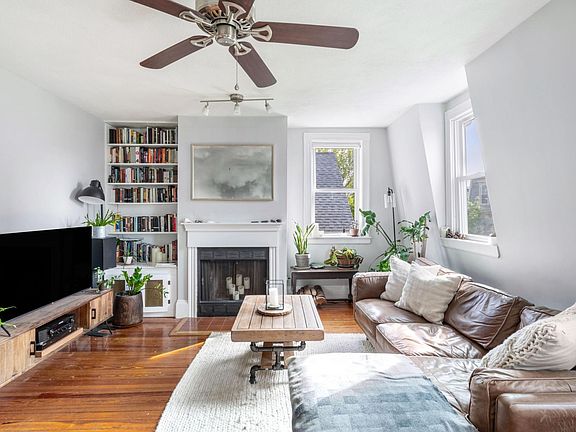 This light and airy 2BR/1BA penthouse features nearly 1,000sf of living space, and a spectacular private roof deck with panoramic views of the Boston skyline and Bunker Hill Monument. A spacious and sunny living room with corner exposure, wood burning fireplace, and built-in bookshelves flows into a large, beautifully renovated, eat-in kitchen with white cabinetry, stainless appliances, and granite countertops. A serene primary bedroom, with four windows offering gorgeous views, is tucked at the rear for privacy. A generous secondary bedroom with corner exposure and closet, and a well-appointed full bathroom with tub and bead board surround, complete this offering. Amenities include: hardwood floors throughout, in-unit W/D, mini-split for A/C, and attic storage. Available now! 1st month, security deposit, and broker fee equal to one months rent due at lease signing. Tenant responsible for gas, electric, and cable/internet. Available now or 7/15, 8/1.