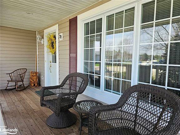 What a Lifestyle! This 2 bedroom, 2 bathroom bungalow boasts pride of ownership throughout. Covered front porch with composite decking. Features include a bright, unique open concept floor plan. Roomy kitchen w/dinette, S/S appliances, & lots of cabinets! 4 season sunroom has walk out to the deck. Living room is welcoming with gas fireplace. The primary bedroom has a walk-in closet & 3 pc ensuite. For easy wash days, laundry is onsite. Second bedroom could also be used as an office or a sitting room. Access to all the amenities of Park Place including a 12,000sq.ft Rec Centre, including salt water pool, gym, library and so much more! The blue water of Wasaga Beach not far away, trail system and Marlwood Golf Course. New Fees have been requested.