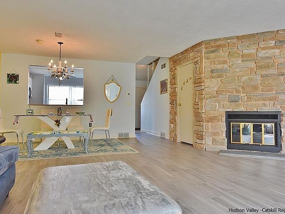 If easy living is what you desire look no further. This two-story Townhouse features two bedrooms, two full baths, and laundry on the top floor. On the ground level you will find an eat-in kitchen with granite countertops, a dining area with an open concept living room, with a gas fireplace. Central AC for comfort in the summer months, and just out the back door is a spacious outdoor patio. HOA includes snow removal, trash pick-up, exterior maintenance, lawn care and water. Personal parking spot and access to guest parking as well. Convenient location minutes from Kingston, Saugerties, and a short drive to the Village of Rhinebeck.