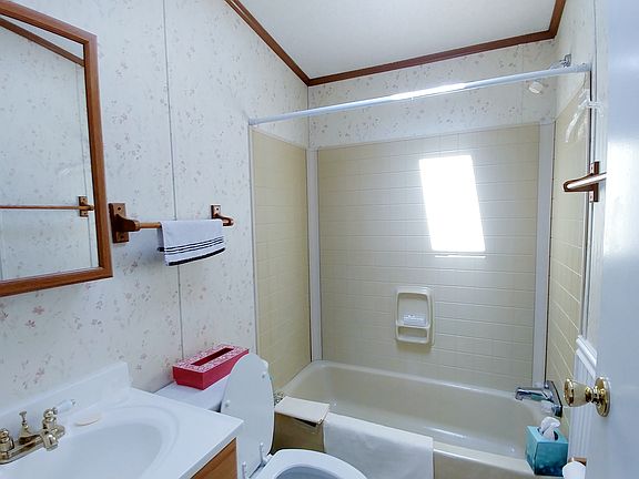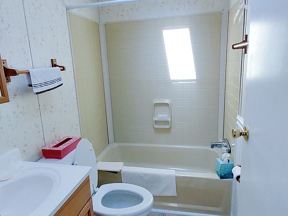 Two bedrooms and two bath home on a corner lot that is ready for you to move right into. Large Living Room and a separate dining room with a built-in china cabinet. Breakfast room off the kitchen. Master bedroom with french doors leading to your ensuite. Enclosed Sun Room for relaxing times. Storage Shed and two car driveway parking is included. Community Center and two playgrounds. Park approval is needed.