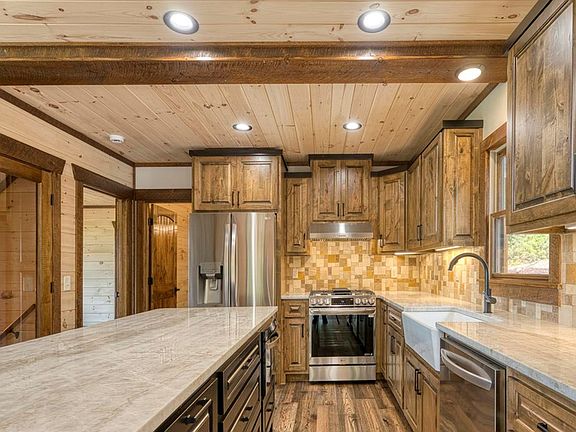 Mountain living at its best, Stunning new Cabin with Quality craftsmanship and a breathtaking Year round mountain view of the National Forest from all 3 levels. Located in the Aska Adventure Area, close to the Toccoa River, Blue Ridge Lake, and Hiking and Biking Trails. Short drive to downtown Blue Ridge. This house features unique rough-sawn finishes, granite countertops, tile showers, and wood and tile flooring. Party porch, 2 outside fireplaces and covered porches.