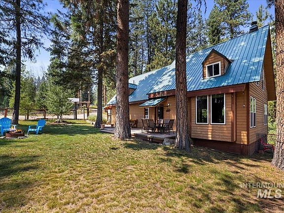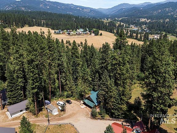 Gorgeous rustic cabin in the pines with lots of room and amazing views. Sleeps 10 comfortably and comes fully furnished. Sit out on one of the Trex porches and be amazed by all the deer and elk that come by. Cozy inside with towering wood beamed ceilings, huge living room & sitting area, big eating area, gourmet kitchen with large pantry. Enjoy the warm living room wood stove during the winter along with a propane stove in the kitchen area. Large downstairs master with nice bathroom right outside. 2 more bedrooms upstairs with a bathroom. Lots of beds and storage for large family getaways. Would make for a great VRBO with good income potential. Enjoy a part time get away from Boise or full time residence. Just 55 minutes from Eagle. Located in the coveted Terrace Lakes community just minutes from golf, hot springs pool, 6 pickleball courts, restaurant, & bar. Roads around Terrace Lakes are fully maintained all year around. Located at the end of Rainbow Rdg. Very peaceful & private, w/no thru traffic.