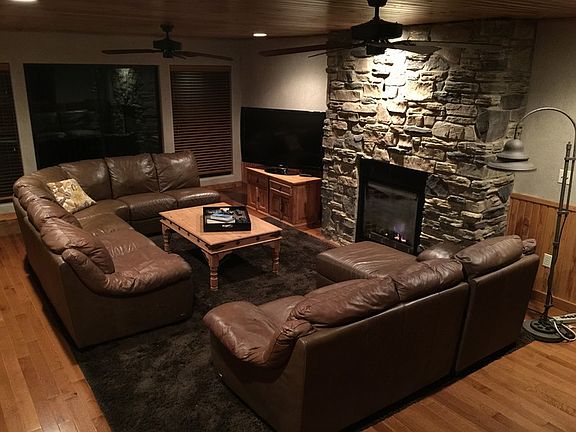 Completely FuRNISHED And Ready for Summer Fun!!! Start The Best Family Memories THiS YEAR! In Your Own LakeHouse! Celebrate This 4th of July Like None Other! Invite All of the Family; There Is Room For Them! Or Make This A Family Retreat; It Is A Great Investment Property For Your Future Generations To Continue Table Rock Lake Living Traditions! Walk 150 feet to your own boat slip and swim in beautiful Table Rock Lake. (view of lake is unobstructed) More water front frontage without any trees than most lake front homes on Table Rock Lake. Neighborhood includes a Swimming Pool, Covered BBQ Area, and full playground for the children. Completely Furnished Home includes breathtaking views and sunsets - walkable to waters edge. Very nice cove to fish from or launch a kayak or canoe from. Over 3,000 square feet of living space. Two Full Kitchens, Two Full Living Rooms, One Large Laundry/Storage Room. Five Bedrooms with Three Full Baths. Home Includes Beds that Sleep 13; this does not include sofa sleeping. Three Large Bedrooms upstairs, and Two Large bedrooms downstairs. Two Full Bathrooms upstairs; One Full Bathroom Downstairs. The downstairs also has a Living Room Area and a Full Kitchen downstairs with an exterior door. (Great For Dual Families) Gas Fireplace is in Upstairs Living Room. Upper level has knotty pine ceiling. Property includes one 15' x 30' boat slip in a boat dock. Slip is covered in a brand new dock. Size is 15' x 30' Dock is directly adjacent to property - to walk from home - less than 150 yards feet away. Heat Pump with Central Air. Home is a very good quality structure with log veneer siding and metal roof. Upper level has hardwood and tile floors. It has custom-made cabinets throughout the home. Kitchen and bathroom counter tops are granite. Basement kitchen has the same appliances as the upper level. International airport in Branson, or less than an hour away to Rogers/Fayetteville Ar. (XNA) airport. Don't miss out on this special piece of property that has been described as having one of the best lake views in the area. Home includes 8 parking spaces (see picture)