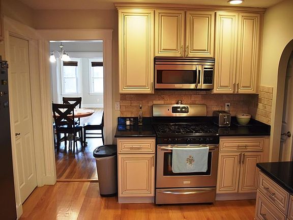 dining room, eat in chef's kitchen with 42" glazed maple cabinets and stainless fridge/five burner stove, stainless dishwasher, disposal, and stainless over stove microwave plus sliding doors to spacious and private back porch. Beautiful wood floors throughout, hot air plus central AC, beautifully renovated kitchen, and front porch. In unit laundry room w/washer & dryer. Close to public transportation (Butler T) and buses. Local shops and restaurants just a quick jaunt from the front door. Neponset River Estuary nearby plus boat launch and marina on the Milton side making for great kayaking opportunity. Quick access by car to Rt 93. Professionally managed unit.