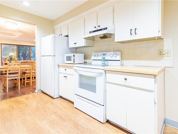 Come and enjoy luxury living in the highly desirable Far Mill River Complex This beautiful townhouse features wood laminate floors throughout the first and second floors. The lengthy foyer and hallway feature ample storage closets that lead to the eat-in galley style kitchen with a full suite of modern appliances. The spacious open living and dining rooms feature 9ft+ high ceilings and sliding glass doors that lead to a private deck perfectly situated for relaxing. The convenient first floor half bath makes this home perfect for entertaining. Gorgeous open staircase leads to two large bedrooms, full bathroom and two additional storage closets on second floor. The master bedroom can easily hold up to a king sized bed and has a walk in closet. The second bedroom boasts built-ins in the work + closet areas. The lower level/basement is partially finished + large enough for a family room/den/playroom or even a third bedroom. Full sized side-by-side washer and dryer is located in the separate raw area of the lower level, also perfect for storing larger or off season items. Bilco doors lead out to picturesque shared yard space. Far Mill River is a family and pet friendly complex with many amenities including a clubhouse with in-ground pool, gym, tennis, basketball courts and playground. Both commuting and shopping will be a breeze, as the complex is convenient to RT-15, RT-8 and a short drive to shopping, restaurants and entertainment. Complex is FHA/VA/CHFA Approved.