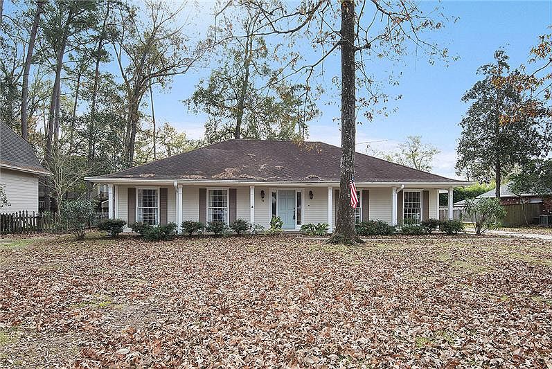 Charming Acadian home move in ready! 4bed/2.5bath & no carpet! Spacious living rm has cathedral ceilings, galley kitchen w/ALL appliances staying including fridge, extra freezer in spacious laundry rm, & washer/dryer. Laminate and tile flooring throughout. Lg Master bedroom and bath w/ his/her vanities & closets. Located in Del Oaks with water access to the Tchefuncte River. Yard is fully fenced and home has detached garage.