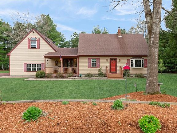 This spacious one owner custom built meticulously maintained Cape Cod style home offers 3 bedrooms, 2 baths and sits on a beautifully landscaped 1.1 acre lot. This home features wood floors, living room with coal burning stove, central vaccum, and a large great room above a heated 2 car garage. The finished lower level includes an office, rec. room, laundry room and storage area. Many upgrades to the home include newer roof, windows and siding. Enter into a large entry foyer from the covered porch which has a sliding door leading to the back yard to enjoy outdoor living at its best. Featuring a 16x16 deck and a secondary trex deck with pergola, landscaped beds and lighting. Also has a nice size shed/workshop with electricity.