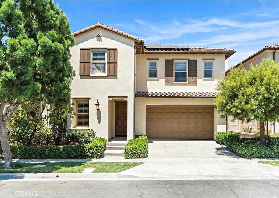 The backyard is designed for entertaining, with a covered California room, built-in BBQ, porcelain tile patio, and mature landscaping for added privacy. Energy-efficient features include 20 fully paid-off solar panels, a water softener system, and a Tesla wall charger—all included with the home. Prime location close to parks, pools, Jeffrey Trail, and award-winning schools. Move-in ready!