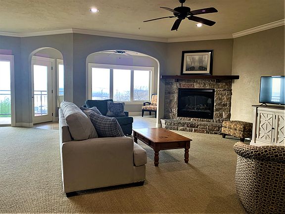 WONDERFUL TABLE ROCK LAKE VIEW from this upscale condo. Ground floor unit with access to lawn area if you need to walk your dog or cat. Elevator to take you down to gound level. Great as vacation or permanent home w/large closets, very open design and enclosed sun room. Fireplace, crown moulding, granite counters, large kitchen with loads of cabinets and great granite bar, sprinkler fire system, etc. Whirlpool tub & separate shower in Masterbath. Club house w/swimming pool, gym, bar-b-que grill & kitchen facilities. No nightly rentals.