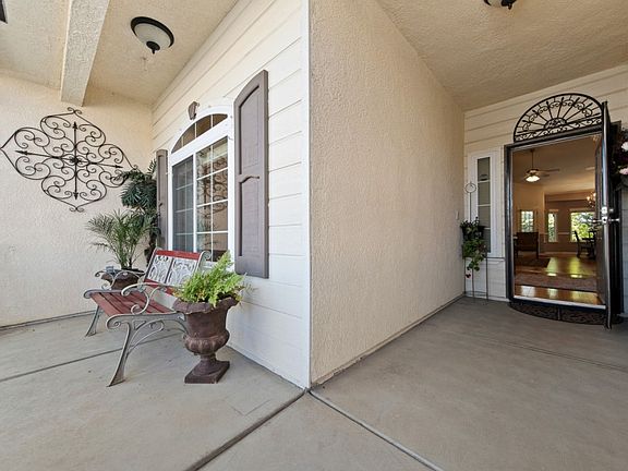 Beautiful Lennar home with charming custom details inside and out. This floorplan offers 2,153 sq. Ft. with 4 bedrooms, 2 bathrooms, a formal living room, dining room, family room, master bedroom, 4th room offers hardwood floors, recent custom paint , crown molding and much more and plenty of storage in the 2 -car garage. Security doors to the backyard. High ceilings highlight the living areas. A double - sided fireplace between the living and family room provides warmth during the winter months. The kitchen boasts granite slab counters with a great eating peninsula and beautiful backsplash with designer tiles. Walk-in pantry. Just off the eat-in kitchen a sliding door leads to the side patio where you'll be entertaining your guests. The master bath has a large soaking tub, his and hers vanities , with a new walk in shower with designer tiles. There are also two walk-in closet's. One in the 4 bedroom, and one in the Master Bedroom. There is access to the backyard from the master bathroom, as well as from the Great Room. The backyard includes a large covered patio with 3 ceiling fans, a shed, and well taken care of landscaping. The hallway bath has double sinks , walk-in shower, a linen closet, and there is another linen closed in the hallway. The laundry room with sink offers both gas and electric hook up options. This home shows pride of ownership and is ready to move in.