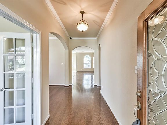 Gorgeous Village Builders, one-story home in Spring ready for move-in! Wood flooring and freshly painted! Beautiful details throughout home including crown molding and raised ceilings. HUGE island kitchen with granite counters, SS appliances, tons of storage plus a walk-in pantry! Private study at the front of the home with french doors, formal dining and open concept kitchen with breakfast and family area. Zoned to award winning schools and within minutes from major thoroughfares, shopping and entertainment. A Must See!!