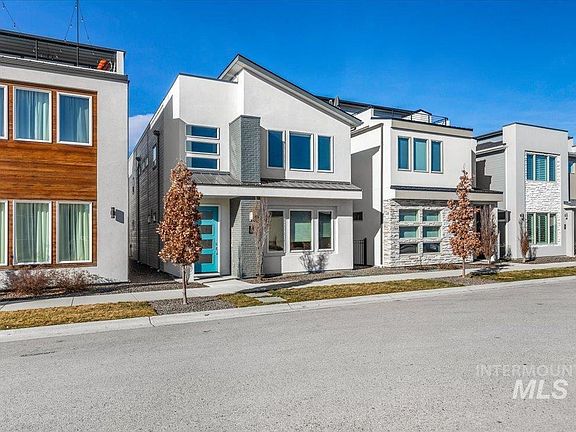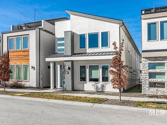Owner Occupied, APPOINTMENT REQUIRED. Like New, spacious, mid-century modern home is conveniently located in the heart of Eagle! Low maintenance living with NO yard work! Step inside to bright open spaces, warm hardwood flooring, & amenities we love! Home is equipped w/tankless on demand hot water, tiled baths, central vac capability, cabinets w/dove tail & soft close drawers. App controlled thermostat & garage door. Stainless steel LG appliances, quartz countertops, gas stove, & a large walk-in pantry make cooking a breeze. Natural light floods through abundant windows creating a light, airy ambiance. You'll love the master ensuite! Flex on main could be office/den/bedroom. Stay comfortable year-round w/2 HVAC systems & cozy gas fireplace in upstairs family room. Enjoy downtown Eagle's shopping & dining options, local farmers market on weekends, or picnic at Guerber Park, close to Merrill Park, the Greenbelt, the Boise River & HWY 55, your gateway to Idaho outdoor adventures! Click tour link for more info