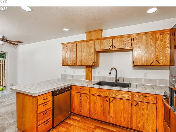 This is it! Move-in ready townhome that exudes spacious living & walking distance from the max line, shopping, & restaurants. This home features a master suite, tiled kitchen countertops, eating bar, gas fireplace, wood laminate flooring, & low maintenance fenced yard and more! Don't miss out! [Home Energy Score = 10. HES Report at https://rpt.greenbuildingregistry.com/hes/OR10181421]