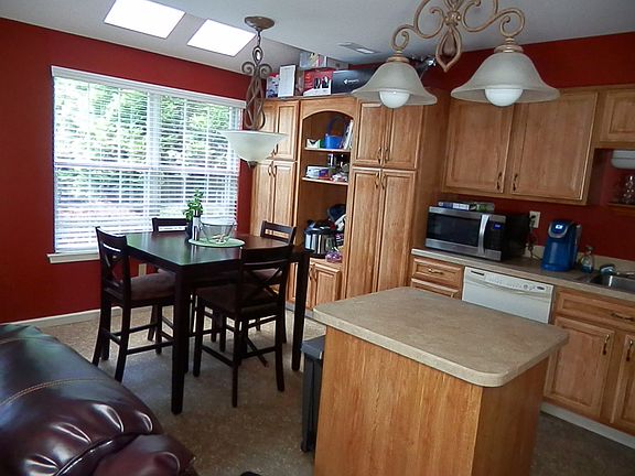This home has an open layout and tasteful upgrades. Once inside you'll be impressed with the elegance of the large formal living and dining rooms which boast modern light fixtures, over-sized bay windows and plank laminate flooring. The area has a turned staircase which makes for a nice flow to the second level of the home. There is a spacious eat-in kitchen with a large center island. The kitchen is an open floorplan and features custom, refaced & built-in cabinetry, large windows & 2 skylights for ample natural light, with access to the rear yard & patio. The family room has wood-burning fireplace. The Master Bedroom has a separate room that can be used for a office, exercise room Or Den, Separate Laundry Room. There are two more bedrooms, each with neutral carpets, plenty of space and wide closets, to complete the upstairs.