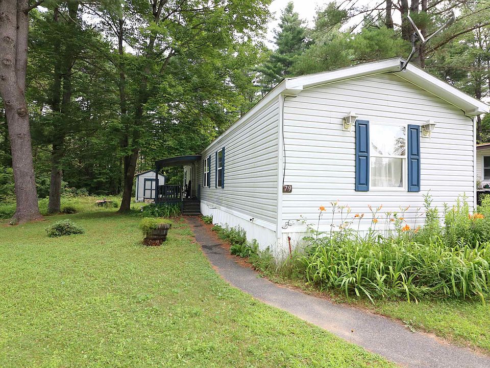 Charming 3-bedroom, 2-bathroom single-wide mobile home in Sandy Pines Mobile Home Park, East Montpelier. Features include a covered porch and a primary bedroom with an en-suite bathroom boasting a stand-up shower and soaking tub. Open concept kitchen, dining room, living room plus 2 additional bedrooms and another full bath. There is a shed to store your yard tools. Enjoy a quiet and convenient location, less than 15 minutes to either Montpelier or Barre. Park rent includes water, sewer, and rubbish removal. Buyer contingent upon park approval.
