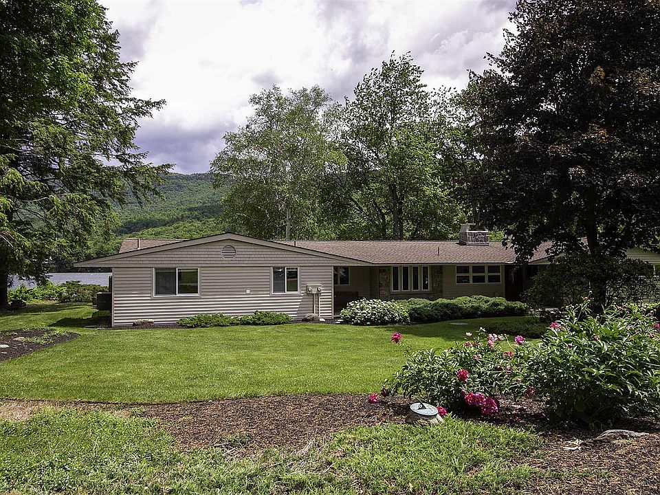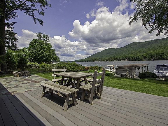 Breathtaking easterly views of Lake George and surrounding mountains with 150' of level lakefront, and offering sandy swimming and deep water docking, this home abounds with casual elegance. The property is set up as a 2 family, with easy conversion - 4 bedrooms, 3 baths, deck,patio, enclosed porch,central air, generator hook up, covered boathouse - complemented by lush landscaping. Watch the morning sun coming over the mountains. Easy living all on one floor. A superb lot and home located in a nicely developed neighborhood. A pleasure to show!