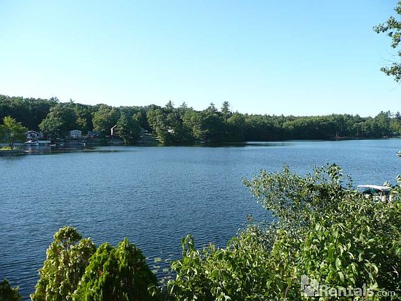 Boston Express 5 minutes away w/ free parking and WiFi 35 minute non-stop to South Station. Spectacular year round views from this lakefront house with large master bedroom suite on loft. Second bedroom has slider to lake from large lake side porch viewing five sliding glass doors with stair to paved patio area down stair to floating dock. Swimming and boating in the summer. Ice fishing, nordic skiing & snow mobiling in the winter. Well insulated w/ new high efficiency furnace. Stainless steel kitchen appliances.