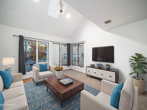 Light-filled 3 bedroom 2 bath rental with huge primary suite - including ensuite bathroom and large walk in closet. All 3 bedrooms are quiet and off of the street, and all 3 have their own dedicated closet space. The front living room/dining room area boasts a cathedral ceiling and a wall of windows allowing for great light into the main living area. The open kitchen allows for open sight lines to the living room/dining room and the peninsula, oversized pantry, and surplus of cabinetry is a definite wow! This rental is also equipped with a full-sized in-unit washer and dryer, and large hall storage closet. Parking is available on site for $200/mo additional and pets will be considered on a case by case basis for an add'l fee. Available now for a 1 year/12 month lease only.