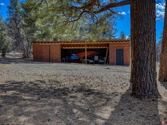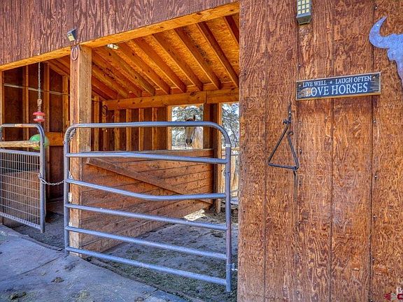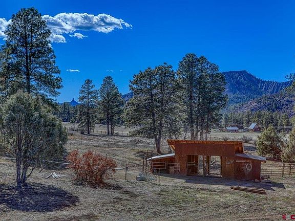 HORSE RANCH IN STUNNING PARK LIKE SETTING. At last, an affordable place to live the mountain ranch dream. Located just 10 miles west of City Market, this beautifully maintained, cross-fenced 10+ acres with Chimney Rock and Pagosa Peak views is the perfect property to find peace and simplicity. The cabin is filled with natural light and designed for seamless indoor/outdoor living. From the upper deck or the lower covered patio enjoy views of Chimney Rock and one of the horse barns. Take advantage of the on-sight grow dome to cultivate your own vegetables all year round. Another barn and a chicken coop on the 10 usable acres with 3 separate pastures rounds out the working hobby farm. With no HOA, you are free to raise chickens, goats, llamas, cows, ducks, sheep, or whichever animals you love. Enjoy covered parking for cars and toys as well as a large 2 car garage with freshly-renovated guest quarters attached. On a quiet cul-de-sac, this home is only a short distance from Hwy 160 and National Forest access.