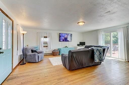 Vacation all year round in this sun filled, spacious waterfront property set on Silver Lake. From morning coffee on your private deck to hosting summer bbqs to enjoying water sports in the lake, this home is a perfect fit for anyone who loves the outdoors - including your own private dock. Hardwood flooring throughout, the generously sized living room opens up through the sliders to the back deck. Large dining room with beautiful waterfront views and ample natural light. First floor full bath with laundry. Upper level includes 3 bedrooms and large full bath with shower stall and Jacuzzi tub. Fourth room with bamboo flooring, bay window, and closet space - perfect for a home office or nursery. Serene aerial view of the lake from the master bedroom. Pellet stove keeps entire home warm throughout the colder months. Approx 22x16 private deck. Plenty of storage throughout. Silver Lake Park offers beach area, playground, & splash pad. *