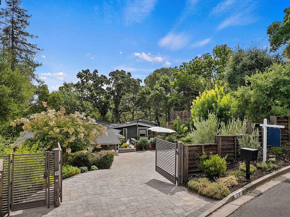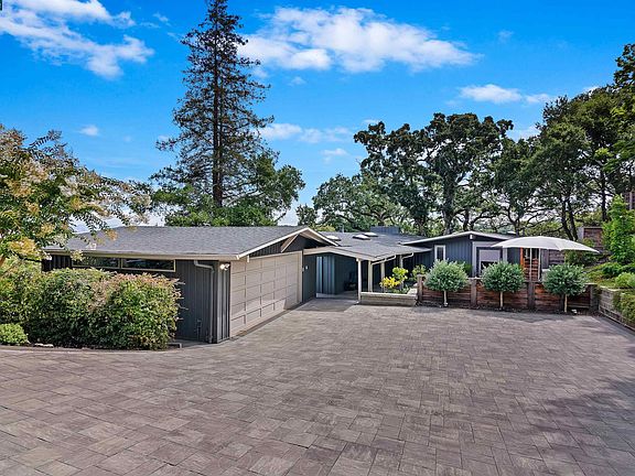 Pristine Mid-Century with a Dramatic Setting Experience the allure of an updated mid-century nestled in the Lafayette/Orinda Hills. Custom Lafayette Iron Works electric gates open to a paver courtyard with a charming patio complete with a gas fireplace. Meticulous landscaping and dramatic custom uplighting showcase the majestic oak trees across the generous +/- half-acre lot. Enjoy al fresco dining on the upper deck or the lower patio while relishing filtered views of Mt. Diablo and oaks. Inside offers finest interior design that seamlessly blends contemporary design and practicality. with updated floor-to-ceiling dual-pane windows, equipped with Hunter Douglas blinds throughout. The formal dining room, great room with a brick fireplace, exposed beamed ceiling, and wide plank floors provide a harmonious blend of comfort and style. The chef's kitchen boasts Bosch and KitchenAid appliances and adjoins the fourth bedroom/bonus room gym with its own deck. The primary suite features an updated bath, a private deck, and access to a spa. Two additional bedrooms offer space and comfort. Highly-rated Lafayette and Acalanes school districts, convenient access to Lafayette and Orinda. Don't miss the chance to make this outstanding home yours.