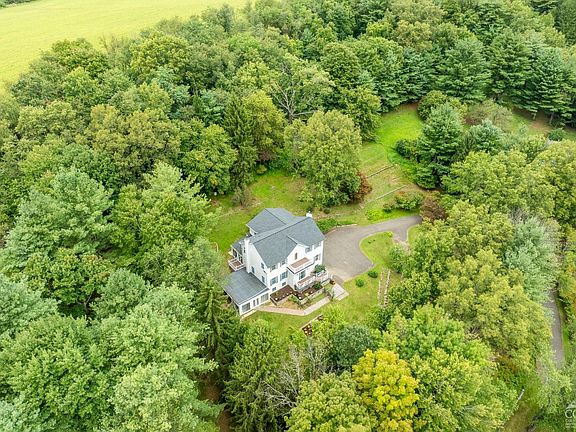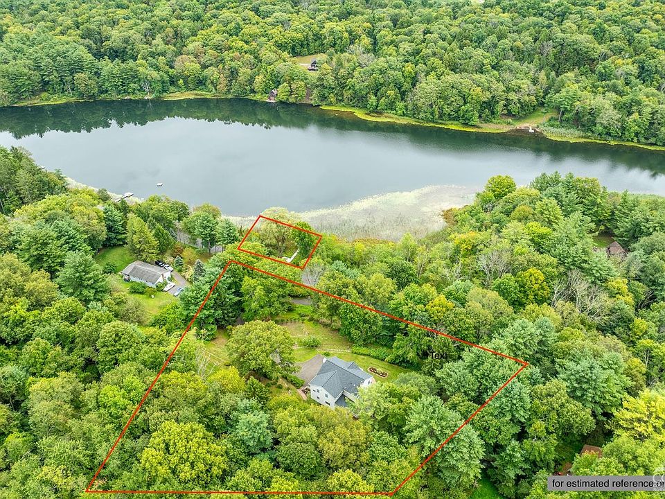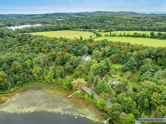 Coveted waterfront property with private dock on scenic and serene Snyder Pond in Copake NY. Set on a picturesque hilltop overlooking beautiful greenery and peaceful Snyder Pond, you'll find this move-in ready colonial home spanning 3,426 square feet, offering 4 spacious bedrooms, 2.5 bathrooms, and nestled on 3.14 lush acres. As you enter the grand foyer, you're greeted by 2 generous closets and a seating area. To the left, the oversized living room bathes in natural light from 4 expansive windows. The inviting family room features a wood-burning stove, a perfect spot for relaxing on the sofa or enjoying a good book. The formal dining room comfortably seats 10 or more, with space for additional furnishings. The bright eat-in kitchen is a chef's delight, with a large island, and a casual dining area. A massive picture window frames views of the tranquil grounds. Glass French doors lead from the kitchen to a charming three-season sunroom, where you can immerse yourself in the beauty of the surrounding landscape. The 2nd floor houses all 4 bedrooms, providing a quiet retreat from the entertaining spaces below. A delightful terrace at the top of the staircase offers wonderful views. The primary suite is a sanctuary, with 4 windows, a king-sized bed, enormous walk-in closet, and en-suite bathroom. 3 additional generously-sized bedrooms, each with ample storage and lovely views, share a hall bathroom. The lower level expands your living space with 3 additional versatile areas: another sunroom leading to the landscaped garden, a large 2nd family room, and a flex space ideal for a gym, home office, or recreation room. Additional features include a 2 car garage, basement, security system, and high-speed internet. The property itself is a testament to natural beauty, with mature plantings, stonework, multiple storage sheds with electricity, and a charming gazebo. The private dock pondside provides a dining or lounge area directly on the water and then extends further into the pond-ideal for your canoe, kayak, or rowboat, or for simply enjoying the tranquil setting. Snyder Pond is a pristine spring-fed body of water covering approximately 25 acres, perfect for swimming, fishing, kayaking, and canoeing. Located conveniently in the heart of Copake and close to Millerton, Hudson, Hillsdale, Copake Lake, Catamount Ski and Adventure Resort, and the Berkshires, this property is the ultimate primary home or weekend retreat. Approximately 2 hours from NYC.