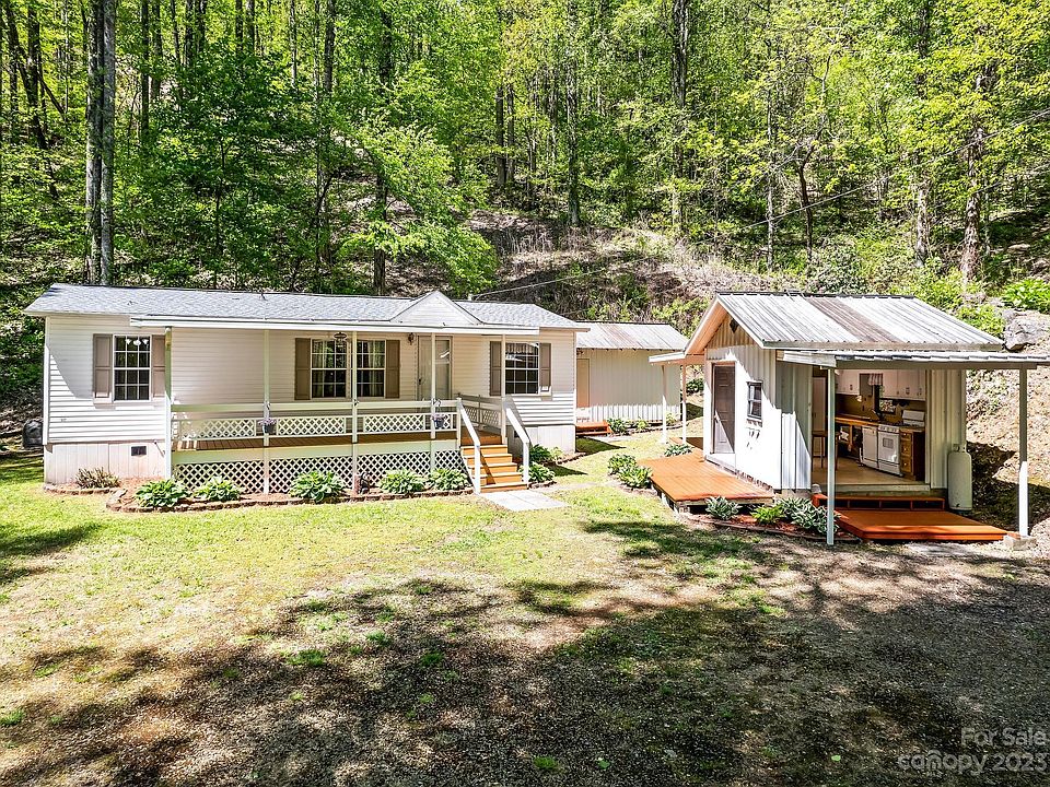 Breathtaking mountains frame your views from this adorable home in Franklin! You will never tire of the fresh air, peacefulness, or vistas. A detached garage converted into a kitchen area and extra deck space provide opportunities for endless entertaining with family and friends. The open living area and kitchen is perfect for gathering, while the split-bedrooms make it feel spacious. Easy main-level living, with an office nook, is perfect for anyone. Move in ready! You'll never want to leave the solitude of this property! Located one mile away from the Appalachian Trail at Standing Indian Ground Campground. Internet is Verizon mobile hotspot (neighbors have Starlink). HIGHEST AND BEST OFFERS DUE FRIDAY, MAY 12TH BY 12:00PM (noon).
