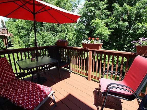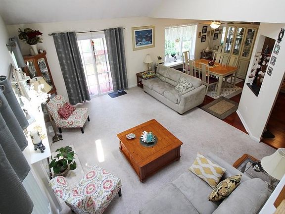 Gorgeous Fox Ridge End Unit - Must See! Stunning 2-Story Living Room w/Fireplace, Skylights & Sliding Glass Doors to Deck w/Amazing Views. Cherry Hardwood Flooring in Dining Room & Granite Kitchen w/Ample Cabinet Space & Glass Tile Backsplash. First Level also Features Home Office & Half Bath. Primary Bedroom Suite upstairs complete w/Sitting Area, Cathedral Ceiling, His & Hers Walk-In Closets, 3rd large Closet, spacious Dressing Area + Full Bath Ensuite. Also upstairs you'll find a 2nd Spacious Bedroom & Full Hall Bath, in addition to convenient Laundry just off Bedrooms! Full Lower Level Walk-Out to Patio w/Utilities & Tons of Storage. Complex offers Beautiful In-Ground Pool, Playground, Tennis Courts, Clubhouse & More! Weight restriction, for Adult Dogs, of no more than 30 lbs. (Pitbulls & Rottweilers NOT allowed.) Taxes Shown Do Not Reflect Basic STAR Tax Deduction, if applicable.