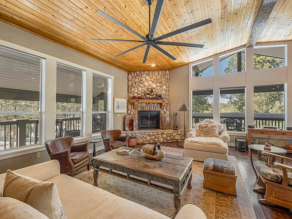 Nestled on an expansive 1.9-acre lot surrounded by whispering pines, this thoughtfully upgraded retreat is just minutes from the Angel Fire Resort Golf Course and Country Club, and a short drive to the ski slopes — offering the perfect year-round mountain escape. Inside, a welcoming great room features a striking window wall framing sunset views of Wheeler Peak and a cozy wood-burning fireplace — the ideal gathering spot after a day of adventure. The upgraded kitchen is generously sized, while the open dining area flows onto a covered deck, perfect for dining al fresco or unwinding under the stars. The spacious primary suite includes a sunny sitting area (or office), updated ensuite bath, and double closets. Two guest bedrooms offer comfort and privacy for family and friends — one with its own ensuite bath. A bonus living space, complete with its own fireplace, is perfect for watching the big game, hosting movie nights, or simply spreading out and relaxing. The attached three-car garage includes a dedicated golf cart bay, storage room, refrigerator, and a bonus bunk room — ideal for a kids’ hideaway, hobby space, or overflow guests. Whether you're entertaining or enjoying some much-deserved R&R, 79 Spyglass Hill Road is the perfect basecamp for mountain living at its finest. Sold fully furnished, decorated, and equipped. This is the home you will come to appreciate more every year due to the Seller's pride of ownership and updates including a new roof, new black-top driveway, remodeled kitchen and bathrooms and more.