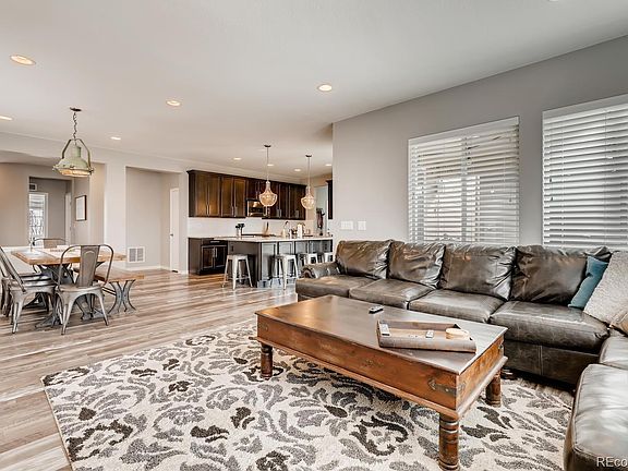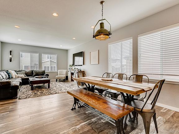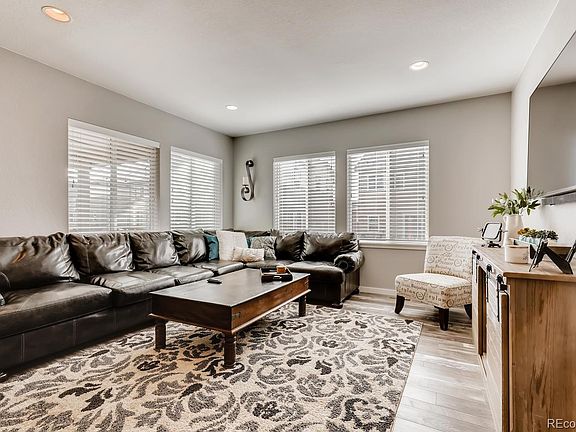 Beautifully upgraded four bedroom with a finished basement is ready to move in! Striking curb appeal with modern lines and stacked stone details grab your attention as you pull up. Welcome inside the foyer to stunning engineered hardwood floors that extend through much of the main level. Open kitchen boasts richly stained cabinets with soft close doors and drawers, 42" uppers and roll out shelves in the lowers. Slab granite countertops are highlighted by the white arabesque backsplash. Pendant lights finish the look over the large island that is perfect for prep or enjoying meals. Stainless steel GE Profile appliances include gas range, microwave, dishwasher and refrigerator. Entertain in the large dining area that flows into the spacious great room that looks out to the covered patio and fully fenced and manicured yard offering a garden area with drip system. Main floor bedroom with adjacent 3/4 bath an be used for family or guests. Upstairs master hosts barn door access to the private 3/4 bath with dual shower heads, kitchen height vanity with dual sinks and tile floors. Two secondary bedrooms utilize the full jack and jill bath with dual sinks plus laundry is conveniently upstairs. Finished basement offers a generously sized game room and media area with resilient vinyl flooring, ideal for hosting guests and watching the big game, plus there is an additional 3/4 bath. Central air, central vac and an efficient QuietCool whole house fan system. Colliers Hill community has abundant open space trails and a community center with pool.