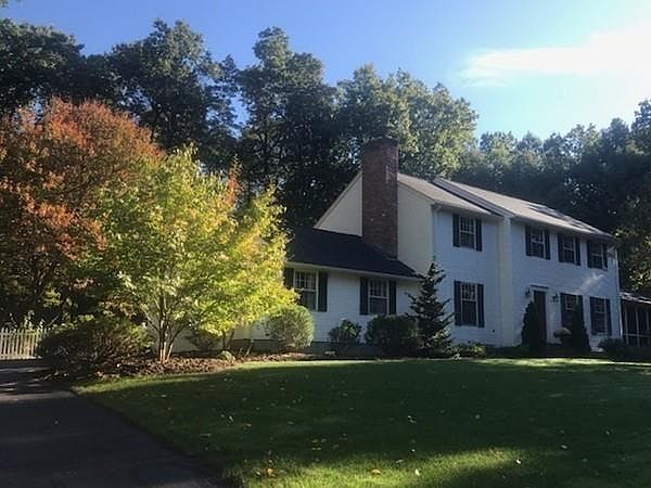 This elegant 4 bed/4 bath center hall Colonial with attached 2-car garage is on the market for the first time. Built in 1985, this home has been meticulously maintained and lovingly cared for. First you'll notice the curb appeal- a white picket fence, brick walkway, south facing home & foliage create an attractive, private setting. A gracious foyer invites you inside to a warm, welcoming floor plan. Living room, dining room, family room w/ fireplace, kitchen and 1/2 bath on the 1st floor. Kitchen has adjoining dining area, stainless appliances, ample cabinets and a large bay window overlooking the backyard. Generous cathedral ceilinged 3-season porch has mahogany flooring, full screens, ceiling fan. 4 beds/2 full baths on the 2nd fl include a suite with walk-in closet/full bath. Partially finished basement with sep. zoned heat & 1/2 bath offers even more living space. Brick patio, shed, underground irrigation syst, tranquil backyard. 'The House In The Woods' is the house of a lifetime!