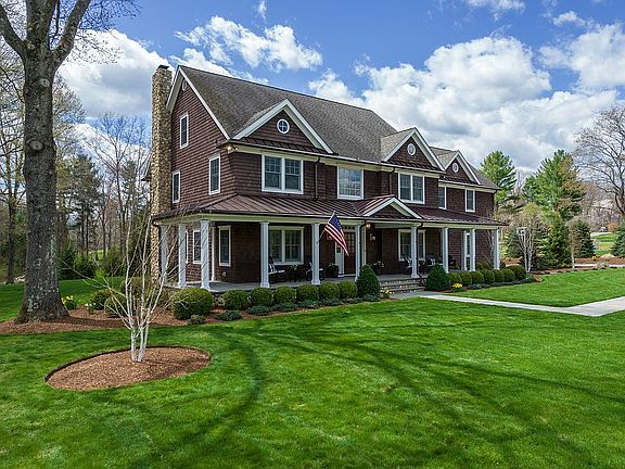 Beautiful owner built modern country colonial located in one of Wilton's most sought after neighborhoods along the border of Weston, with one of the top school systems in the state. This 5932 total sq ft home with 4600 sq ft of living space is located just 5 minutes to Cannondale train station and the Merritt parkway and 10 minutes to I95 and the Westport train station. House sits on a leveled two acre lot with mature deer resistant trees and shrubs, with a stunning stone wall and pillar entranceway. A Belgium block lined driveway, slate walkways and a rear patio with a spectacular fire pit for those cool fall evenings. The rear yard has been pre-approved for a built-in pool or tennis court. Spectacular wrap around front porch with metal roof. In addition to the real wood cedar shake siding, there is AZEK composite materials on all pillars and trim work on the outside. Step inside to this radiant heated floor, 4 bedroom, 2 1/2 bath with a laundry room on the second floor. A Beautiful chefs kitchen with stainless steel appliances with custom marble and granite countertops. An open floor plan to family room with a field stone fireplace. The entertainment room over the garage with a 7.1 Dolby Surround system will give you a movie theatre experience combined with a copper top bar, sink and mini refrigerator. This room has 8 inch rift and quarter red oak plank flooring complemented by a fieldstone veneer wall. The perfect setting for a movie night. Speaking of the garage, this one is an oversized 30 ft deep by 26 ft wide with 9 ft wide garage doors and an epoxy coated radiant heated floor. The newly renovated basement has a playroom and gym area on one side with storage and utility room on the other. This house is a green star home with energy star appliances and mechanicals. Oh and of course finished storage in the attic! For sale by owner, no brokers please and showings by appointment only. (203) 762-1717 Covid social distancing and masks for all entering the home. Disclaimer: All information deemed reliable not guaranteed. Buyers responsibility to verify.