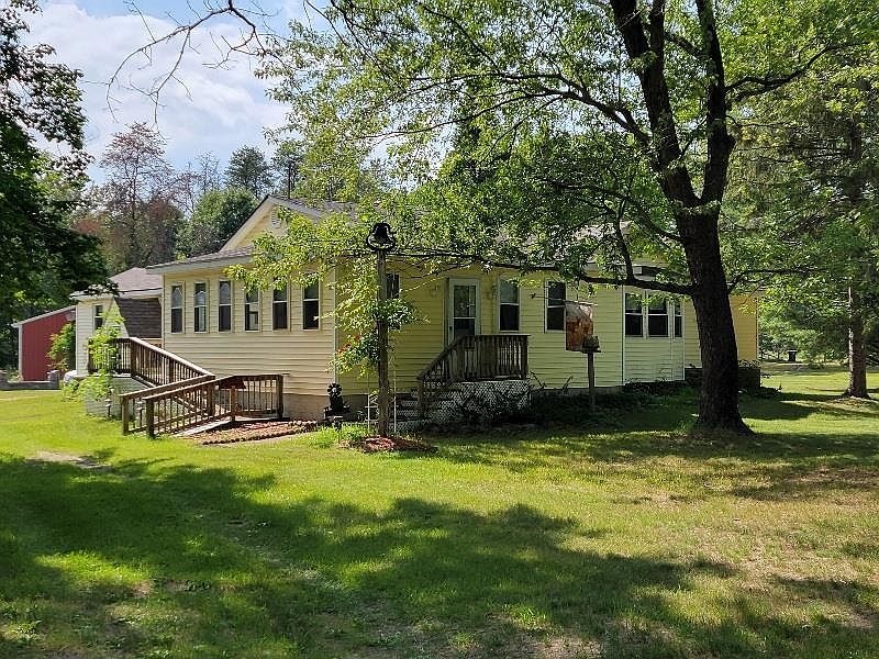 Hobby Farm with multiple outbuildings, two barns, one with stalls, 2nd barn for storing hay and feed, chicken coup, large kennel. Fenced in pasture. Garden area fenced. Workshop in garage. This home needs a family, over 1800sq. ft. with a full basement. Three bedrooms with a bath and half, huge sunroom off the dining room overlooking the property. Large family room, laundry room with 1/2 bath and office in the basement. Beautiful property just under 7 acres with a small pond. This property also has a guest house with 2 bedrooms and 1 bathroom. Kitchen has brand new hickory cabinets recently installed. Must see to appreciate the potential of this property. Interior photos coming soon.