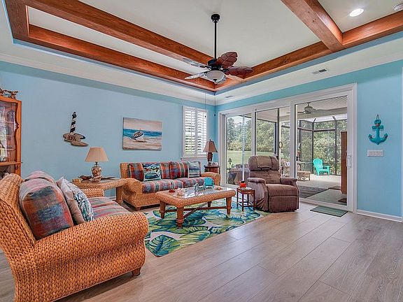 Why wait to live in paradise! Available now in Latitude Margaritaville Hilton Head. This beautiful Antigua villa, less than 2 years old, is located in Phase 1 at the end of a wooded, private. cul-de-sac. Lives large at 1,558sf on an oversized lot, 2 car garage, 2 bedroom, 2 bath with heated bidets, plus den (w/barn door and closet). X-Large, extended lanai with birdcage. Herringbone pavers from driveway to font door. Plantation shutters throughout. Tray ceilings and beams. Granite and quartz countertops. Whole house laminate. Plus other upgrades, too many to list. Asking $539,900. 2% buyers agent coop available.